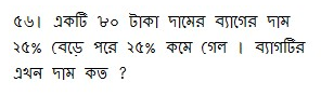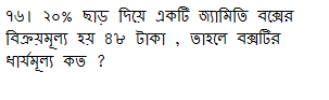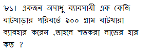 ৭৭। ক্রয়মূল্য ও বিক্রয়মূল্যের অনুপাত ১০:১১ হলে শতকরা লাভ কত ?